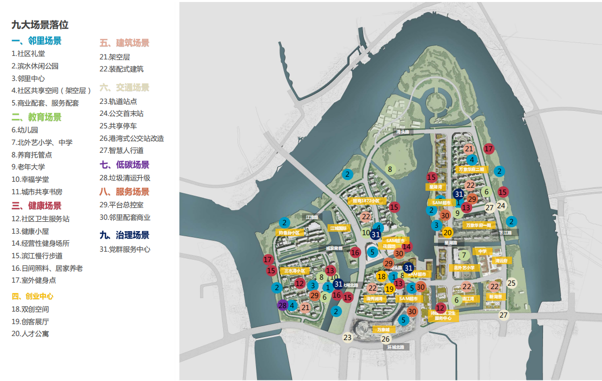 灣頭未來社區(qū)作為第四批創(chuàng)建省級(jí)的未來社區(qū)(舊改類),灣頭片區(qū)南至環(huán)城北路,東西北三面被余姚江環(huán)繞,地理位置相對(duì)獨(dú)立,下轄灣頭社區(qū)、萬(wàn)象社區(qū)、萬(wàn)豐社區(qū)、萬(wàn)潤(rùn)社區(qū)。擬定規(guī)劃單元面積大約150公頃,實(shí)施單元面積約88公頃,總投資約為2804萬(wàn)元。 實(shí)施內(nèi)容包含社區(qū)架空層改造升、鄰社中心裝修、社區(qū)共享書房、健康小屋、慢行系統(tǒng)改造升級(jí)、共享工位改造、充電樁、智能斑馬線、數(shù)字化建設(shè)等。通過黨群服務(wù)中心和社區(qū)架空層的改造,完善教育、健康、鄰里、建筑和治理的場(chǎng)景,通過優(yōu)化現(xiàn)狀交通,完善交通場(chǎng)景,同時(shí)結(jié)合平臺(tái)總控和充電樁的建設(shè),完善服務(wù)和低碳的場(chǎng)景,確保未來社區(qū)九大場(chǎng)景的全面落位。